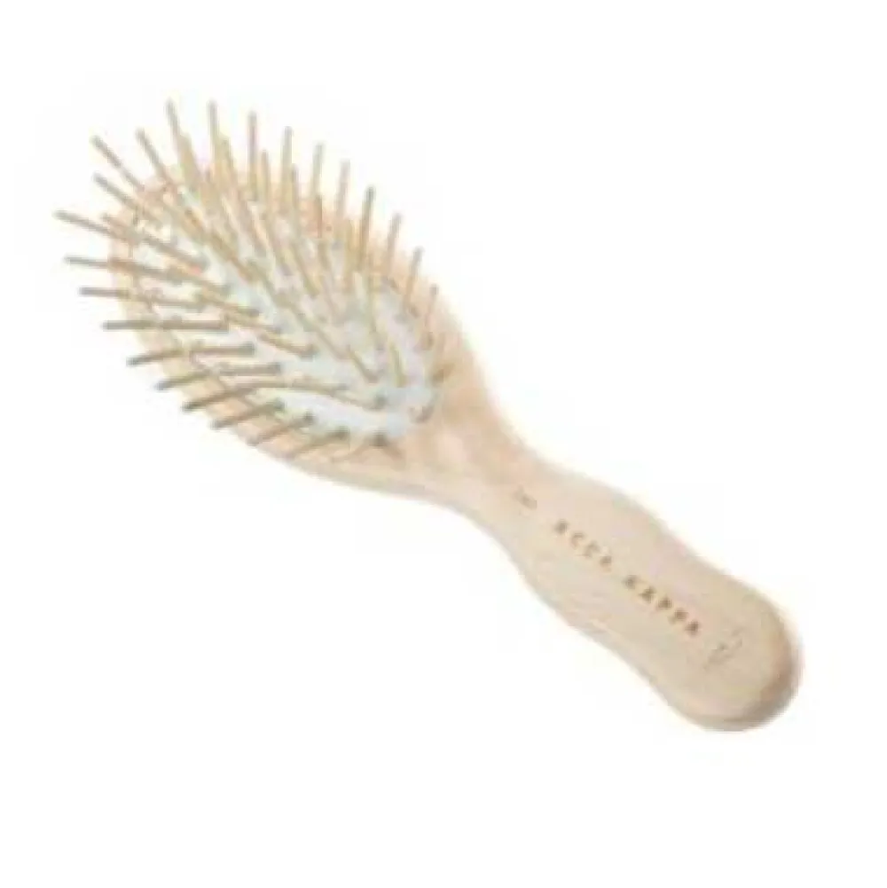 Pneumatische Bürste aus Buchenholz mit Buchenholz-Stiften, Reisegröße; mit Naturkautschuk-Kissen.