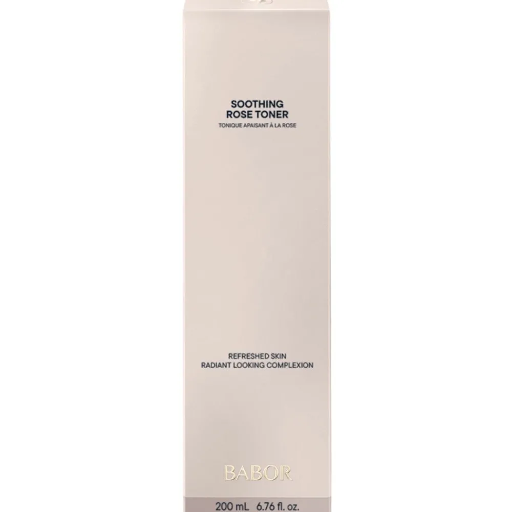 Der BABOR Soothing Rose Toner ist ein tonisierendes Gesichtswasser ohne Alkohol für alle Hauttypen, selbst für die empfindliche Haut. Die milde Formel mit verwöhnendem Rosenduft erfrischt und unterstützt ein ausgeglichenes Mikrobiom. Provitamin B5 unterstützt die Hautberuhigung und Glycerin spendet Feuchtigkeit. Ein Extrakt aus der Damask Rose unterstützt den Schutz der Haut vor Stress, während ein Proteinextrakt aus dem Moringa Samen die Haut vor negativen urbanen Umwelteinflüssen schützt. Perfekt gereinigt zeigt sich die Haut aufnahmefähiger für die nachfolgende Pflege. Das Ergebnis ist ein strahlender, erholt wirkender Teint und ein ebenmäßigerer Hautton.