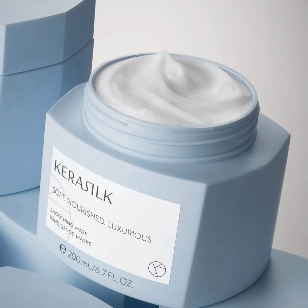 Die Kerasilk Bändigende Maske ist eine Maske zur intensiven Tiefenpflege, mit Biomimetic SIlk und Shea Öl. Die zu 100 % vegane Formulierung pflegt selbst das sprödeste Haar intensiv, bändigt und nährt es – für außergewöhnliche Frizz-Kontrolle, wunderschönen Glanz, langanhaltende Kontrollierbarkeit und bis zu 6,7- mal geschmeidigeres Haar.