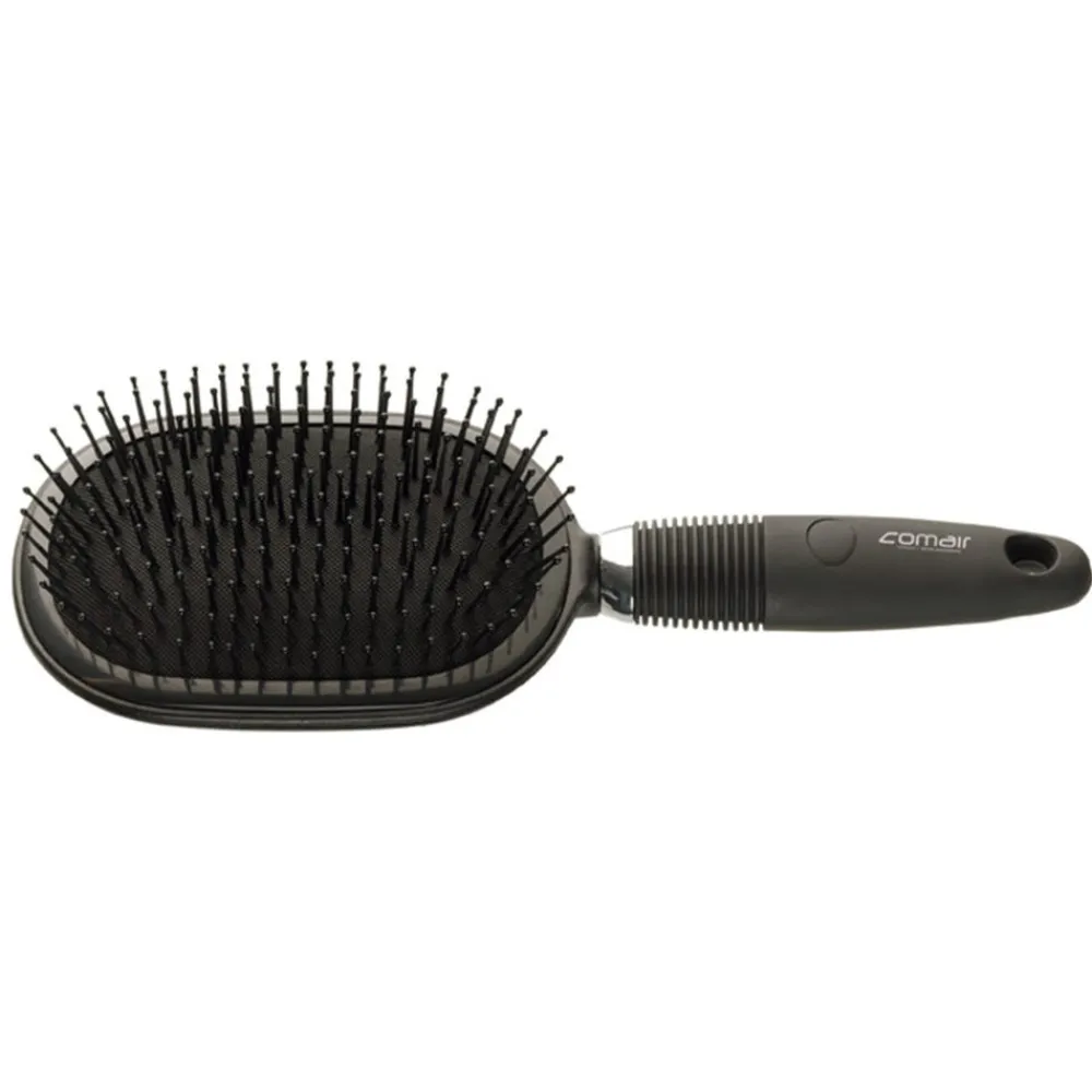Die Comair Bürste Jumbo schwarz KS-Noppen 13 reihig hat ein Gummikissen, Noppen und eine Aufhänge-Öse.