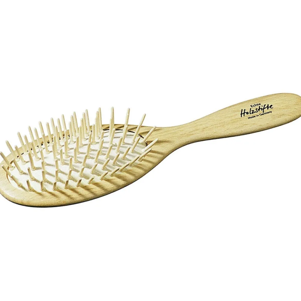 Die Canal Pneumatikbürste groß, antistatisch ist antistatisch, glättet und reinigt das Haar und hat Griffe aus heimischem, geöltem Buchenholz.