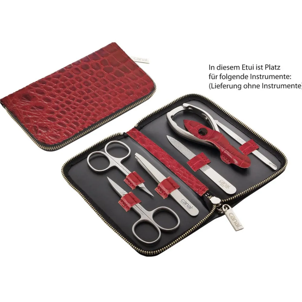 Das Canal Bügeletui aus Leder unbestückt Kirsche ist das perfekte Aufbewahrungsetui für deine Canal Utensilien.