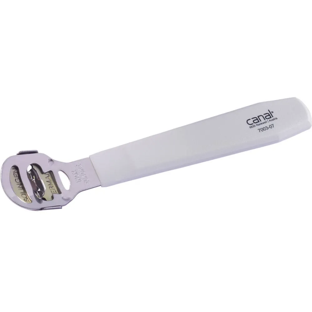 Der Canal Hornhauthobel mit Kunststoffgriff, 145 mm ist für das professionelle Entfernen unerwünschter Hornhautstellen geeignet. Die Hornhauthobelklingen sind im 10er Pack nachbestellbar.