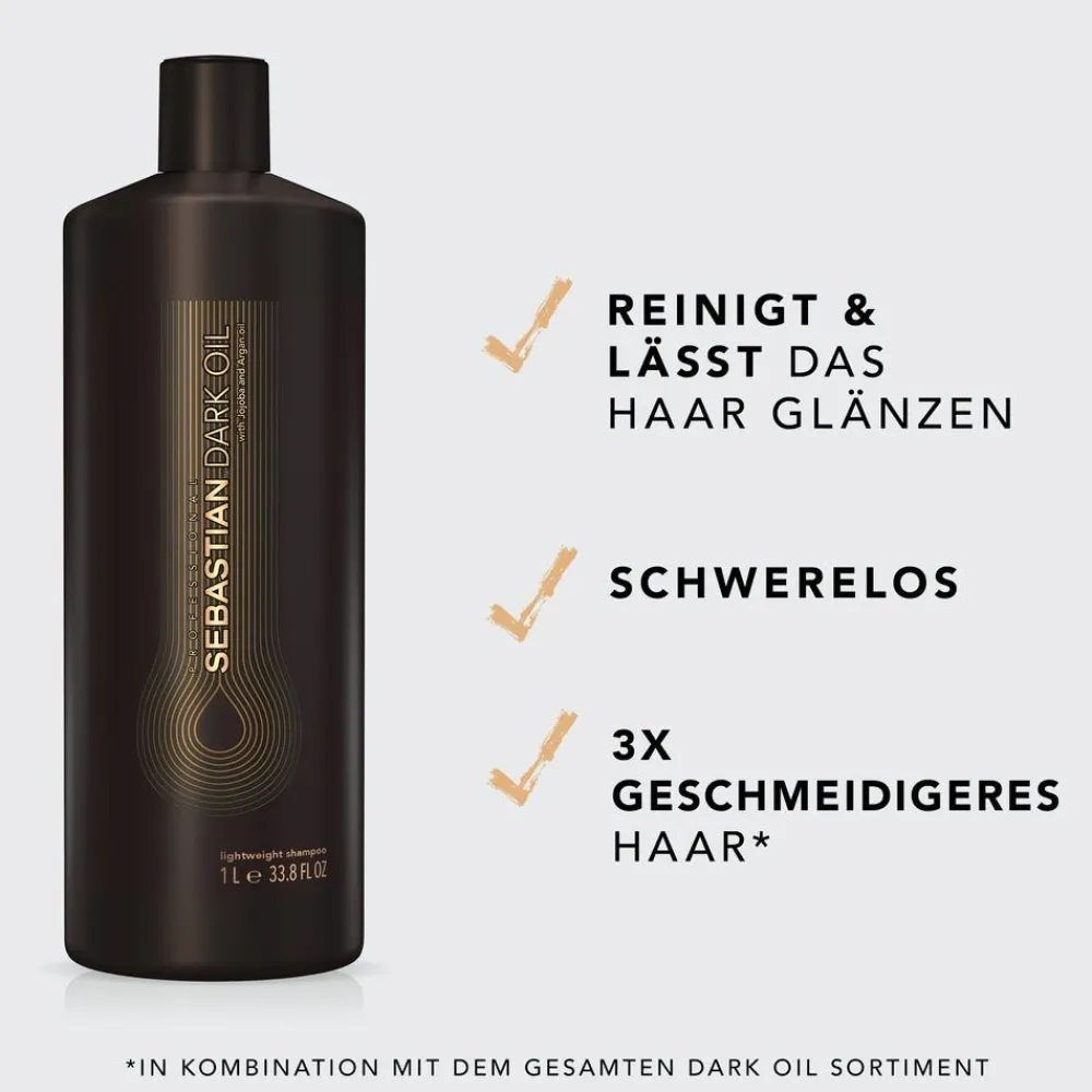 Das schwerelose Sebastian Dark Oil Shampoo mit einer besonderen Kombination natürlicher Öle (Jojoba- und Arganöl). Reinigt gründlich und sorgt für ein griffiges Haargefühl.