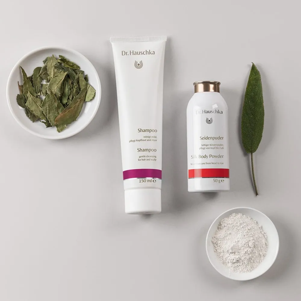 Der Dr. Hauschka Seidenpuder verleiht zuverlässigen Schutz, pflegt die Haut und macht sie geschmeidig zart. Die Komposition aus echter pulverisierter Reinseide, angereichert mit Heilpflanzenauszügen aus Salbei, Enzian und Eichenrinde entfaltet auf der Haut eine leicht desodorierende und juckreizlindernde Wirkung. Die natürliche Hautflora wird stabilisiert. Die feine Puderkomposition ist sehr gut verträglich. Die Körperhaut wird natürlich mattiert, auch sensible Haut wird auf milde Art und Weise geschützt.