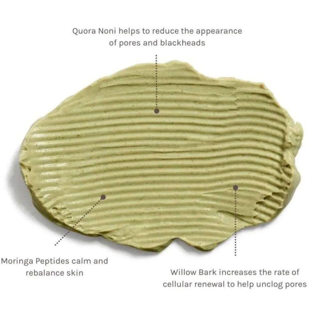 | Inhaltsstoffe | Aqua (water), Caprylic/ Capric triglyceride, Glyceryl stearate, Kaolin, Zea mays (corn) starch*, Illite, Pentylene glycol (from sugar cane), Salix alba (willow) bark extract, Candelilla/ jojoba/ rice bran polyglyceryl-3 esters, Moringa oleifera leaf powder*, Parfum (naturally derived fragrance), Morinda citrifolia callus culture lysate, Aloe barbadensis leaf juice powder*, Montmorillonite, Glycerin, Cetearyl alcohol, Sodium stearoyl lactylate, Sodium stearoyl glutamate, Citric acid |