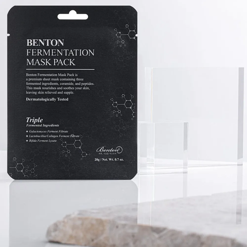 Die Benton Fermentation Mask Pack ist eine hochwertige Boosting-Maske. Sie enthält Galactomyces-Ferment-Filtrat, Bifida-Ferment-Lysat, Collagen-Ferment-Filtrat, Peptide und Ceramide. Frei von künstlichen Duft- und Farbstoffen und Alkohol. Die Earthpact-Verpackung ist aus 100% Zuckerrohr hergestellt und mit Sojaöltinte bedruckt.
