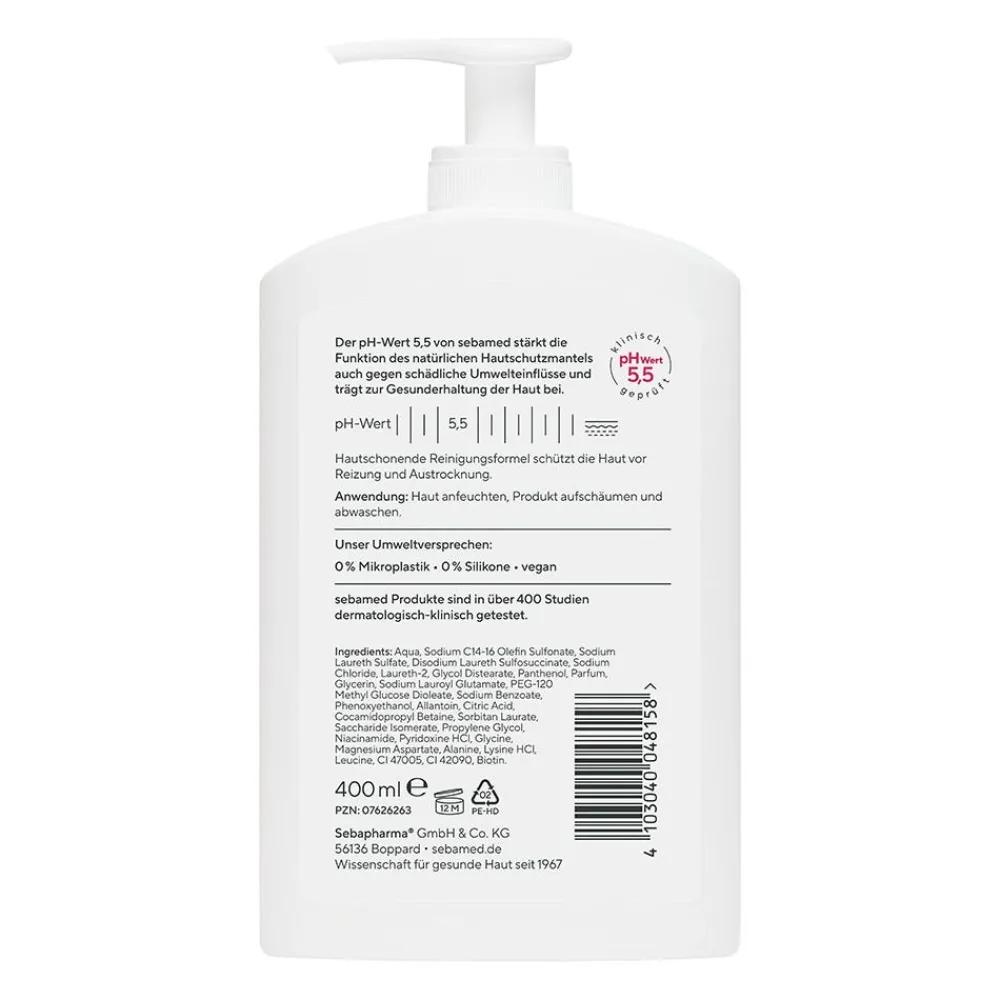 Die sebamed Flüssig Waschemulsion ist eine seifenfreie Reinigung für empfindliche und problematische Haut. Ein Reinigungskomplex mit besonders milden Waschaktivsubstanzen reinigt die empfindliche Haut und hilft, die Haut vor Reizung und Austrocknung zu schützen. Ein Pflegekomplex mit Pentavitin®*, Glycerin und Panthenol gleicht Feuchtigkeitsverlust aus. Der pH-Wert 5,5 unterstützt den natürlichen Hautschutzmantel und macht die Haut widerstandsfähiger. Hervorragende Eignung für empfindliche und problematische Haut dermatologisch-klinisch getestet. Bei Hauterkrankungen und Seifenverbot nach Rücksprache mit dem Arzt.