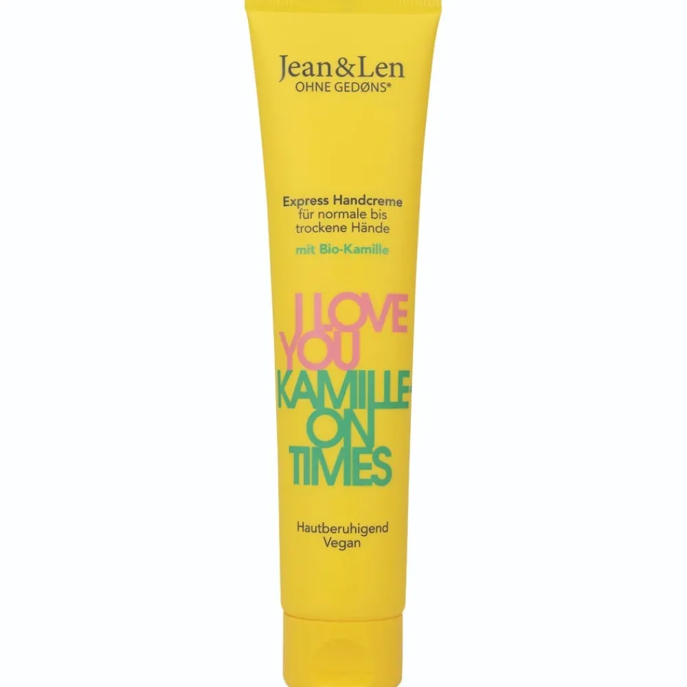 Die Jean & Len Handcreme Kamilleon Times verwöhnt beanspruchte Hände mit beruhigendem Bio-Kamillenblüten-Extrakt, spendet Feuchtigkeit und zieht schnell ein – für liebevolle Pflege im Alltag.