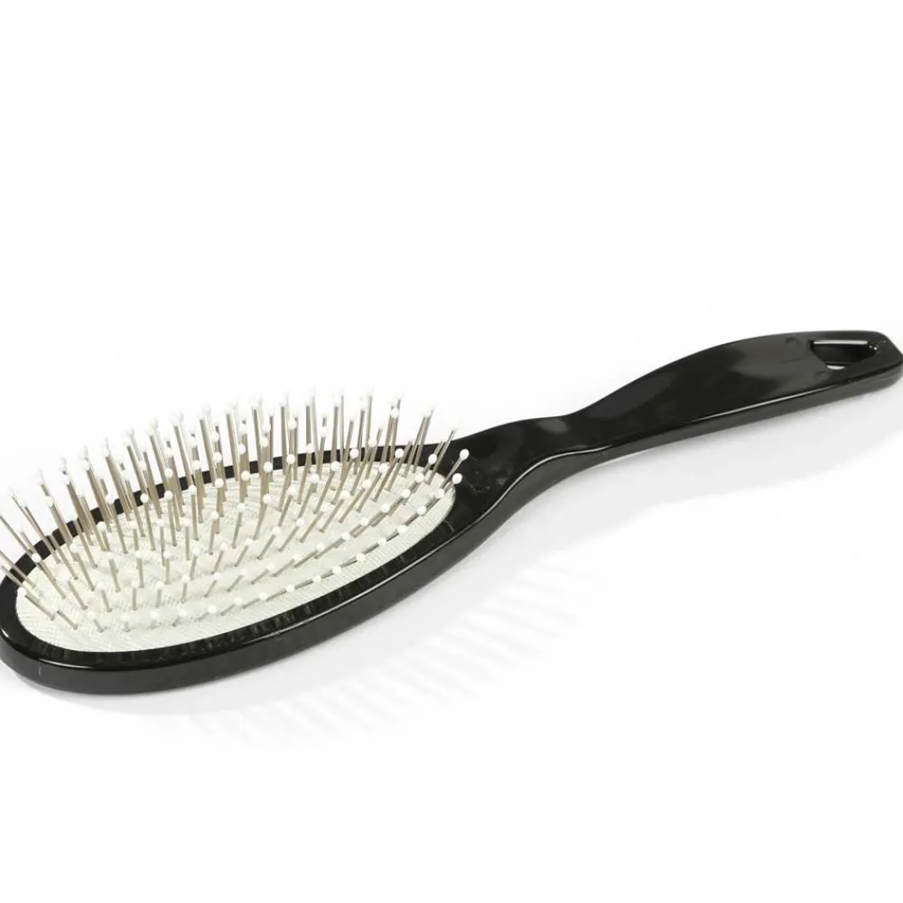 Die Braun & Wettberg Kunststoffbürste – Drahtstifte ist mit einem weißen Kissen und benoppten Drahtstiften ausgestattet.