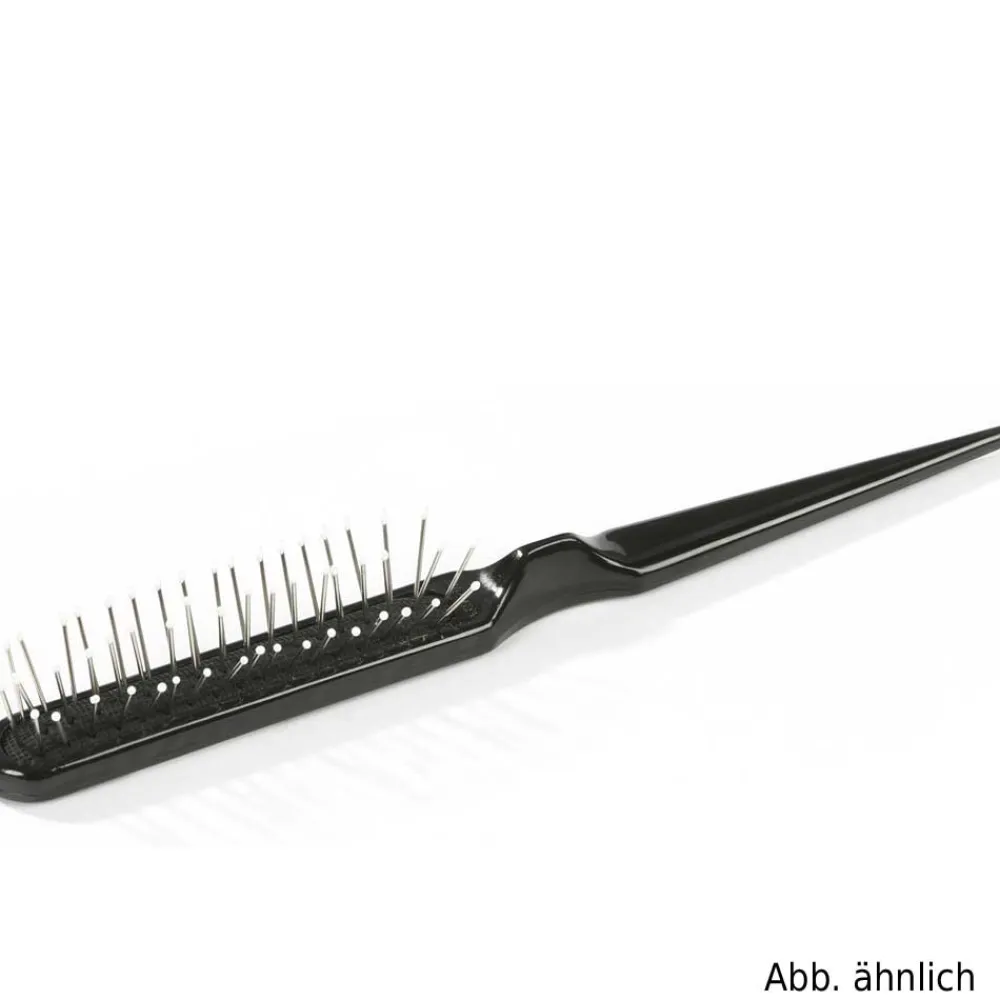 Die Braun & Wettberg Kunststoffbürste mit Toupiergriff, weiß mit schwarzem Kissen ist mit Drahtstiften mit Noppen ausgestattet und verfügt über einen praktischen Toupiergriff.
