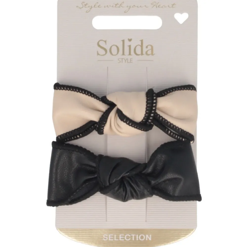 Ganz gleich, ob du kurzes oder langes Haar hast, die Solida Leder-Schleife mehrfarbig in Lederoptik sind das ideale Accessoire.