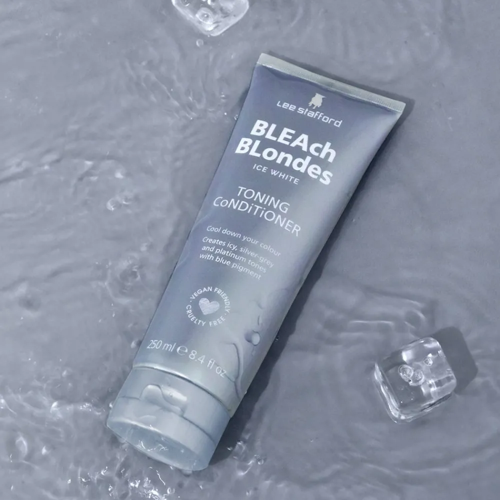 Das Lee Stafford Ice White Conditioner für einen kühleren Farbton. Frisch gebleichtes Haar sieht hell und schön aus, kann aber mit der Zeit einen Messington annehmen und warme, orangefarbene Töne hinterlassen. Unser Iconic Ice White Toning Conditioner ist ein wichtiger Farbkorrektor für platinblondes Haar. Die echten blauen Pigmente in unserer Indigo-Formulierung beseitigen den unangenehmen Messington und lassen das Haar eiskalt aussehen. Nach dem Erfolg unseres Bleach Blondes Ice White Shampoos haben wir diesen Ice White Toning Conditioner auf den Markt gebracht, den Sie entweder mit dem Shampoo kombinieren können, um mehr Ton pro Wäsche hinzuzufügen, oder allein für eine präzisere Anwendung in den Haarlängen verwenden können. Perfekt für Balayage oder Wurzelziehen. Machen Sie keine Kompromisse bei der Pflege Ihres Haares! Diese Tönungskorrektur-Kur pflegt und korrigiert zugleich. Die magische Formel mit dem Pro-Blonde ComplexTM aus Panthenol (Vitamin B5), Kamille und Moringa-Samenextrakt (auch bekannt als Wunderbaum) hilft bei der Pflege von gebleichtem und naturblondem Haar. Bleach Blondes – Ein Kult-Favorit für gebleichtes, balayaged oder gesträhntes Haar.