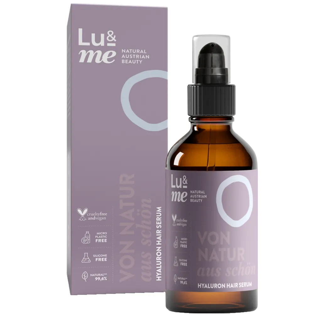 Das natürliche LU&ME Hyaluron Hair Serum ist ein wahrer Feuchtigkeitsbooster für beanspruchtes und trockenes Haar. Es pflegt das Haar besonders intensiv mit Hyaluronsäure und wertvollen Mandel- und Erbsenproteinen und spendet reichhaltig Feuchtigkeit. Hinterlässt das Haar weich und geschmeidig, ohne es dabei zu beschweren.
