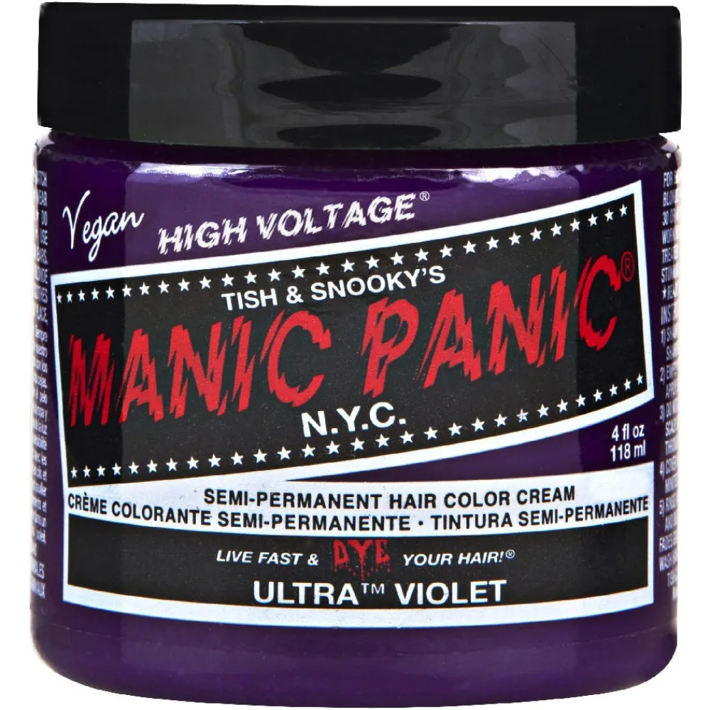 Die Manic Panic Classic Haarfarben sind vegan und semipermanent. Sie waschen sich über einen längeren Zeitraum aus ( im Idealfall 4 – 6 Wochen ). Das beste Farbergebnis erzielen Sie auf vorgebleichtem Haar ( Level 9-10 ), hierzu können Sie z.B. das Manic Panic Flash Lightning Kit benutzen.