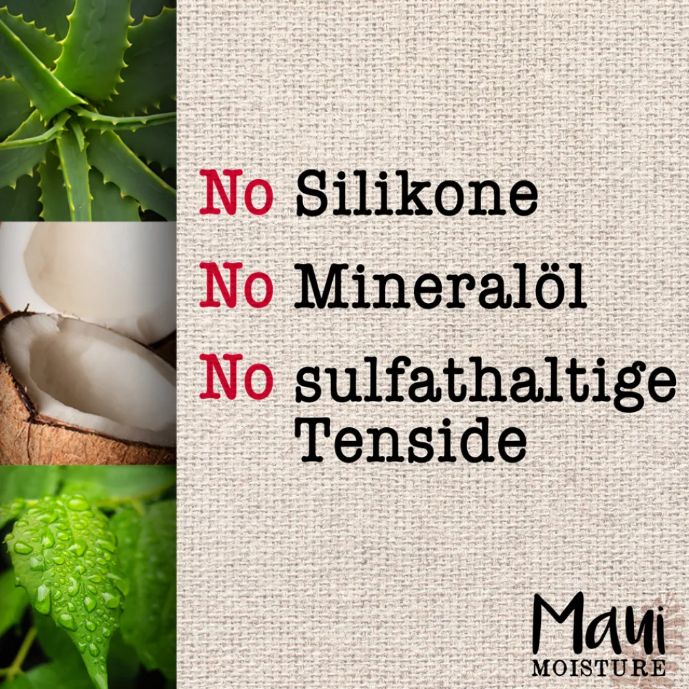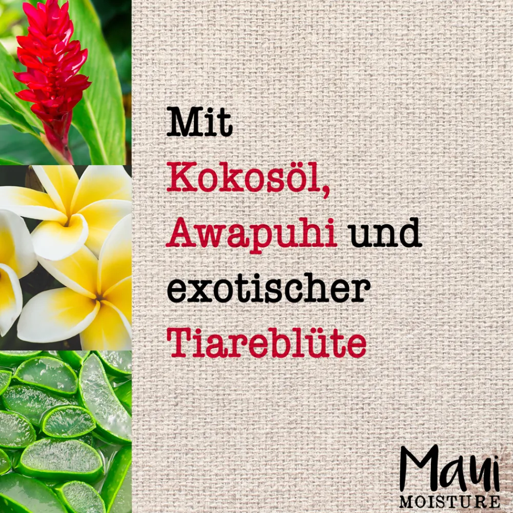 Das Maui Moisture Shine Amplifying + AWAPUHI Shampoo mit Kokosöl, Awapuhi und exotischer Tiareblüte versorgt das Haar mit wichtiger Feuchtigkeit. Zudem duftet die feuchtigkeitsspendende und vegane Formel besonders angenehm und exotisch. Das Maui Moisture Shine Amplifying + AWAPUHI Shampoo ist für alle Haartypen geeignet und verleiht stumpfem, trockenem Haar strahlenden Glanz. Das pflegende Feuchtigkeitsshampoo mit Aloe vera entwirrt das Haar sanft und versorgt es bis in die Haarspitzen mit wichtigen Nährstoffen.