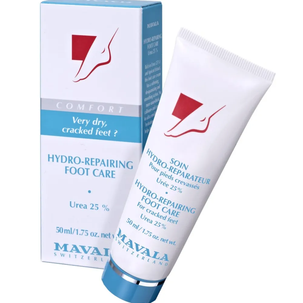 Die Mavala Hydro-Regenerierende Fußpflege ist geeignet für trockene und beschädigte Füße, rissige Fersen und Hornhaut. Um die Elastizität und Geschmeidigkeit der Füße zu fördern, wirkt die Fußpflege durch ihre reichhaltige Formel sofort beruhigend und feuchtigkeitsspendend und ermöglicht es, gegen abnormale, übermäßige Hornschichten an den Füssen effizient zu wirken. Zusätzlich kann sie auch an sehr trockenen Ellenbogen und Knien verwendet werden. Die Creme hat einen angenehmen Menthol-Duft.