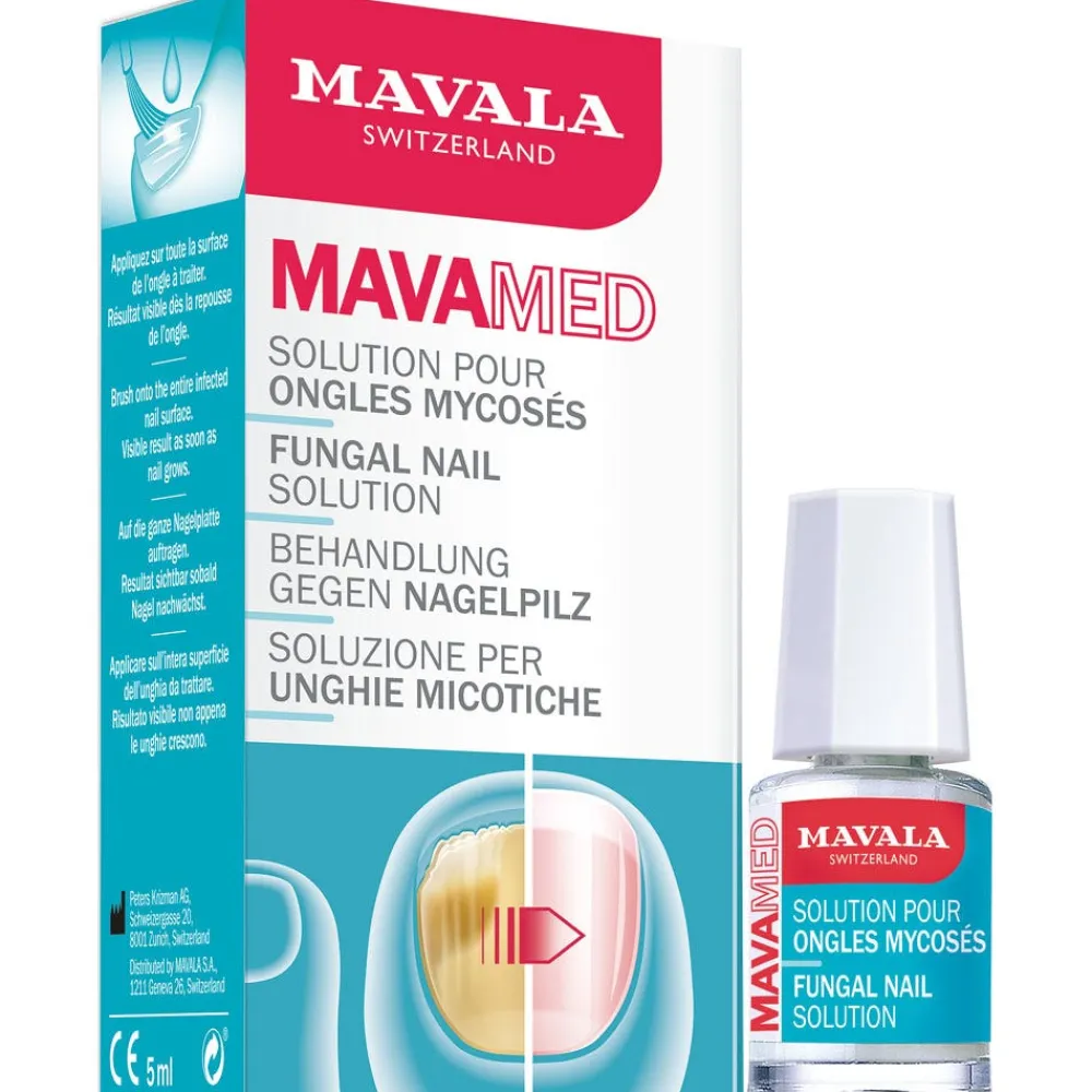 Mavala MAVAMED ist eine effektive Behandlung gegen Nagelpilz. Das medizinische Produkt behandelt Pilzinfektionen des Nagels. Die Behandlung wirkt als physische Barriere und verhindert somit die Übertragung. Der enthaltene „Instant Killer“ Komplex hält innerhalb von Sekunden die Entwicklung der Infektion auf uns verhindert so die Ausbreitung auf andere Nägel. Mavala MAVAMED enthält eine Mischung aus ätherischen Ölen und Milchsäure, um den pH-Wert zu verringern und so ein ungünstiges Umfeld für den Nagelpilz zu bilden.