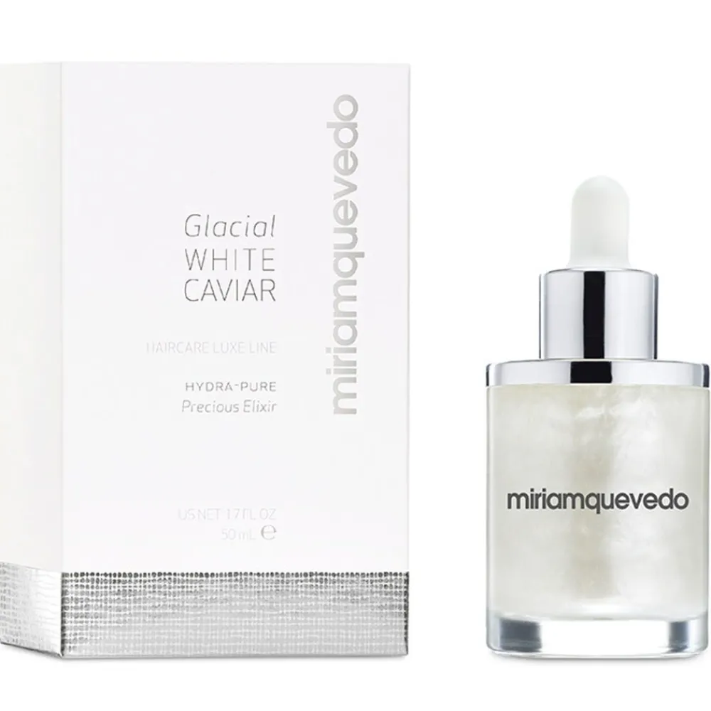 Ultrareparierendes Miriam Quevedo Glacial White Hydra-Pure Precious Elixir verleiht dem Haar Haar ein seidig-kaschmirweiches Finish und strahlenden Glow. Die Glanzkur besteht aus reparierenden und schützenden Inhaltsstoffen, darunter weißer Kaviarextrakt zum Schutz vor freien Radikalen und Schäden durch Hitzestylinggeräte.
