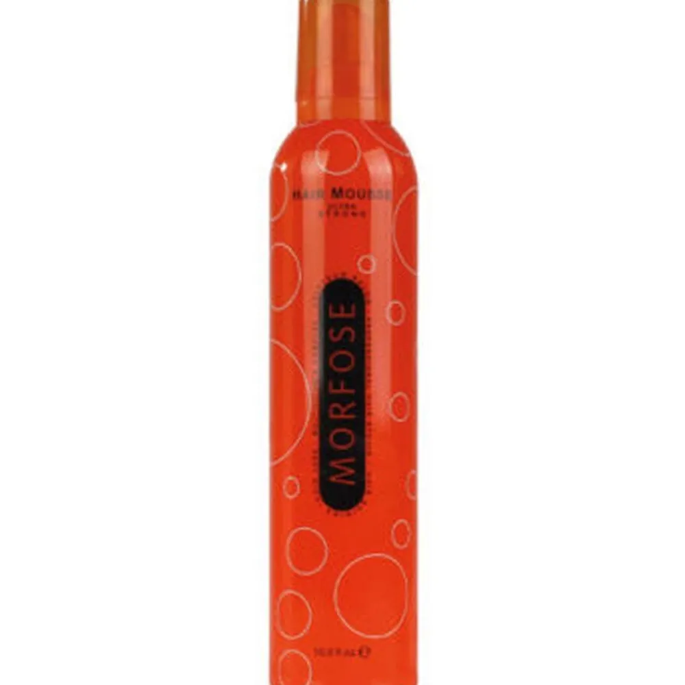 Das Morfose Mousse Ultra Strong Orange mit Ceramide 2, Soja und Weizenproteinen schützt das Haar beim Trocknen und schafft Geschmeidigkeit und ein glänzendes Aussehen.