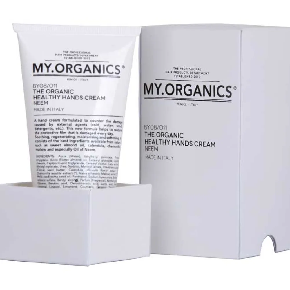 Die My.Organics My Healthy Handsist eine Handcreme für die Linderung von Schäden durch Außeneinwirkungen (Kälte, Wasser, Wind, Reinigungsmittel, usw.). Diese neue Formel hilft zum Wiederaufbau der Schutzschicht, die täglich beschädigt wird. Lindernd, regenerierend, feuchtigkeitsspendend und weichmachend, mit den besten Inhaltsstoffen der Natur, wie Mandelöl, Ringelblume, Kamille,Malve und insbesondere Neem-Öl. Neem-Öl hat eine antioxydierende und Anti-Aging-Wirkung. Es besitzt antivirale, antibakterielle, antiseptische und heilende Eigenschaften.