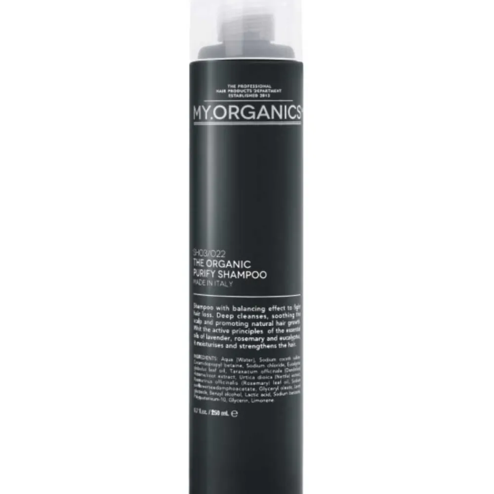 Das My.Organics My Purify Shampoo mit pH 5.0-5.5 ist ein reinigendes Shampoo zur unterstützenden Behandlung gegen Haarausfall mit ausgleichender Wirkung. Es reinigt tiefgehend, wirkt beruhigend und begünstigt den natürlichen Haarwuchs. Die Wirkstoffe der ätherischen Öle von Lavendel, Rosmarin und Eukalyptus stärken das Haar und versorgen es mit Feuchtigkeit.