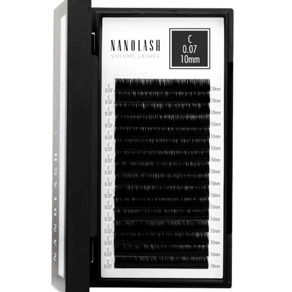 Die Nanolash Volume Lashes 0.07 C 10mm zur Wimpernverlängerung im Stil „Silk Lashes“ sind zur Anwendung in Kosmetikstudios bestimmt. Sie wurden aus einem hochwertigen, synthetischen Stoff hergestellt, wodurch sie Erwartungen der besonders anspruchsvollen Kundinnen und Wimpernstylistinnen erfüllen. Sie zeichnen sich durch eine überdurchschnittliche Qualität aus, weil sie dicht gewebt und handgemacht sind. Die künstlichen Wimpern sind nicht nur besonders weich und elastisch, sondern auch den menschlichen Naturwimpern täuschend ähnlich. Sie ermöglichen beeindruckende Effekte dank der haltbaren Biegung, tiefen Farbe und großen Auswahl der Wimpernvarianten. Die Wimpernextensions kommen in fünf Dicken und acht Längen vor. Zur Auswahl stehen außerdem zwei Biegungstypen. Diesbezülich ist es möglich, die Kunstwimpern an die individuellen Bedürfnisse problemlos anzupassen. Die Wimpernextensions Nanolash Volume Lashes bewähren sich sowohl bei Volumentechniken als auch bei der klassischen Wimpernverlängerung. Die Struktur der Härchen ermöglicht die Bildung der Wimpernbüschel mit der Shifting- oder Scratch-Methode.