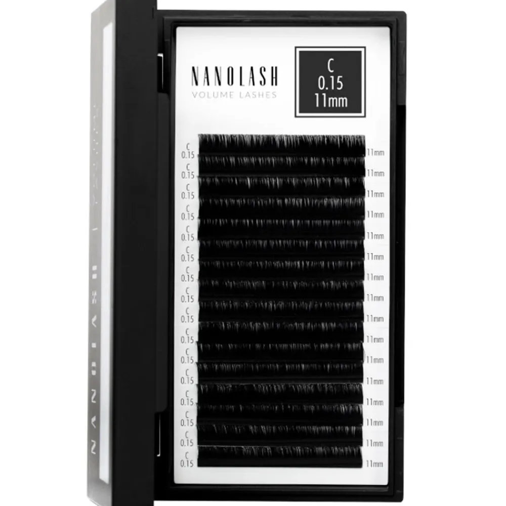 Die Nanolash Volume Lashes 0.15 C 11mm zur Wimpernverlängerung im Stil „Silk Lashes“ sind zur Anwendung in Kosmetikstudios bestimmt. Sie wurden aus einem hochwertigen, synthetischen Stoff hergestellt, wodurch sie Erwartungen der besonders anspruchsvollen Kundinnen und Wimpernstylistinnen erfüllen. Sie zeichnen sich durch eine überdurchschnittliche Qualität aus, weil sie dicht gewebt und handgemacht sind. Die künstlichen Wimpern sind nicht nur besonders weich und elastisch, sondern auch den menschlichen Naturwimpern täuschend ähnlich. Sie ermöglichen beeindruckende Effekte dank der haltbaren Biegung, tiefen Farbe und großen Auswahl der Wimpernvarianten. Die Wimpernextensions kommen in fünf Dicken und acht Längen vor. Zur Auswahl stehen außerdem zwei Biegungstypen. Diesbezülich ist es möglich, die Kunstwimpern an die individuellen Bedürfnisse problemlos anzupassen. Die Wimpernextensions Nanolash Volume Lashes bewähren sich sowohl bei Volumentechniken als auch bei der klassischen Wimpernverlängerung. Die Struktur der Härchen ermöglicht die Bildung der Wimpernbüschel mit der Shifting- oder Scratch-Methode.