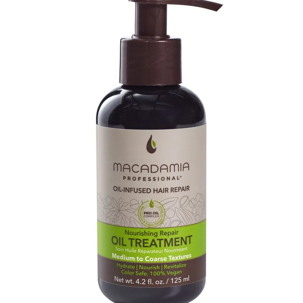 Das MACADAMIA Nourishing Repair Oil Treatment reduziert Haarbruch um 82%. Es ist reich an Omega-Ölen, pflegt das Haar tiefenwirksam und macht es geschmeidig. Glättet Frizz und beugt künftigen Haarschäden vor.
