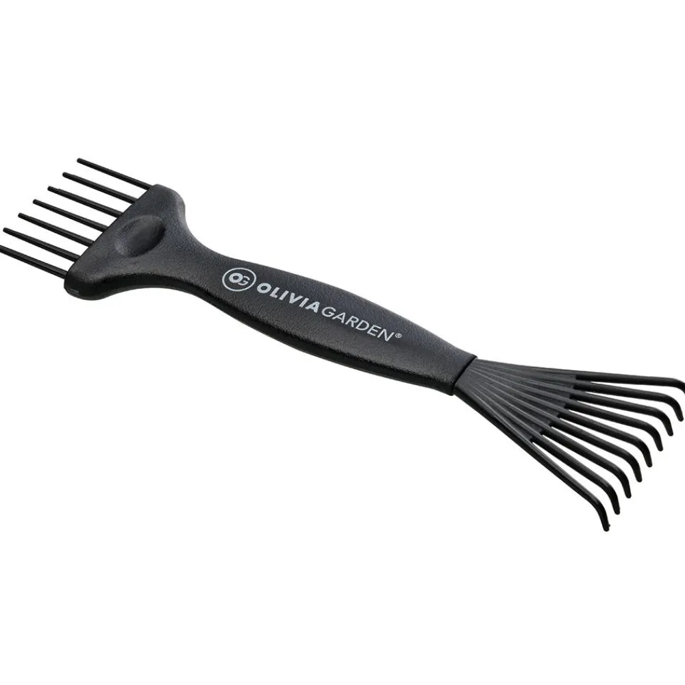 Der Olivia Garden Bürstenreiniger Mini aus recyceltem Kunststoff Schwarz leistet einen wichtigen Beitrag zur Salonhygiene und zum Umweltschutz: er ist aus recyceltem Kunststoff hergestellt. Der grobe Rechen entfernt Haare und Rückstände, der feine Rechen nimmt einzelne verbliebene Haare präzise auf.