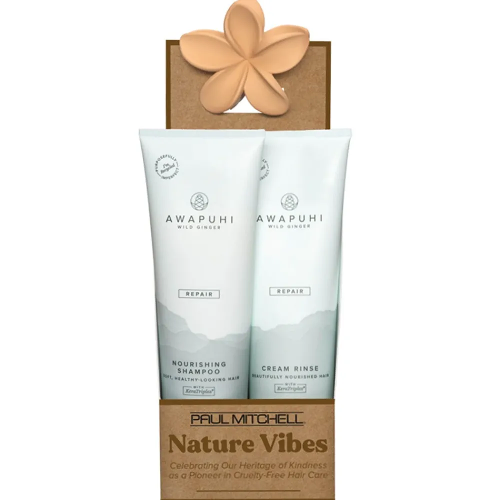 Das Paul Mitchell Awapuhi Wild Ginger Repair Nourishing Duo Nature Vibes ist eine reichhaltiges, farbschonende Pflege für beanspruchtes Haar. Dieses Duo, welches Ihnen einen Preisvorteil gibt gegenüber eines Einzelkaufs, enthält: Paul Mitchell Awapuhi Wild Ginger Repair Nourishing Shampoo 250 ml und Paul Mitchell Awapuhi Wild Ginger Repair Cream Rinse 250 ml.