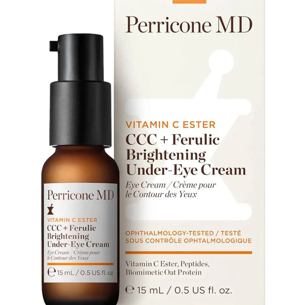 Die aufhellende, schnell einziehende Perricone MD Vitamin C Ester Daily Brightening Under-Eye Cream reduziert dramatisch das Erscheinungsbild der drei Arten von Verfärbungen unter den Augen: braun, blau und rot. Drei Formen von Vitamin C und Ferulasäure, die freie Radikale bekämpft, reduzieren sichtbar dunkle Augenringe, während Peptide dazu beitragen, das Erscheinungsbild blauer Schwellungen und Tränensäcken unter den Augen zu minimieren – für ein strafferes, wacheres Aussehen. Mit einem biomimetischen Haferprotein, das Rötungen sichtbar mindert, wird die empfindliche Augenpartie beruhigt und gepflegt.