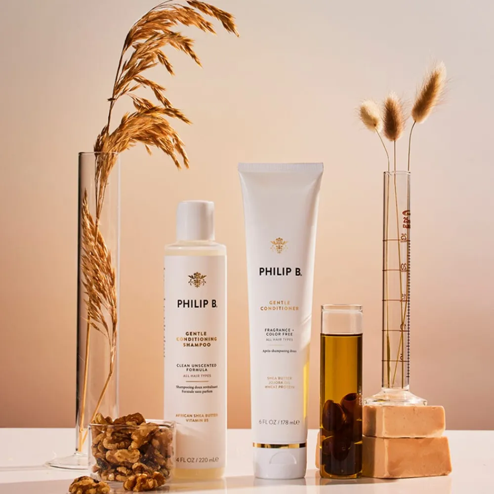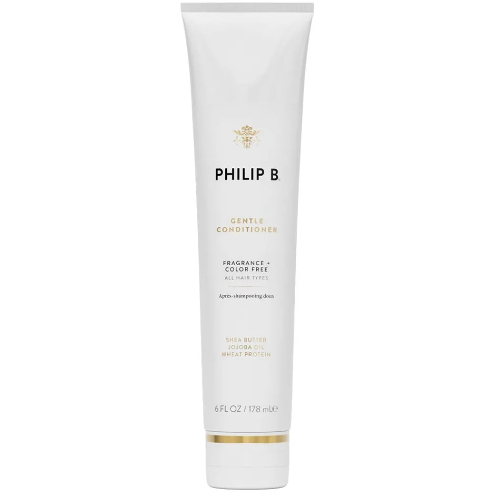 Wenn Sie eine hochwirksame Pflegespülung wünschen, aber sehr empfindlich auf Duftstoffe reagieren, ist der Philip B. Gentle Conditioner genau das Richtige für Sie. Er basiert auf einem von Philip B‘s Bestsellern – dem Lightweight Deep Conditioner -, aber wir haben die Essenzen der kalifornischen Zitrone, Orange und Gardenie herausgenommen. Das Ergebnis: ein superstarker Conditioner, der geruchsneutral entwirrt und mit Sheabutter, Vitamin B5 und Weizenproteinen angereichert ist, damit sich Ihr Haar üppig und seidig anfühlt und ein glänzendes Aussehen erhält.