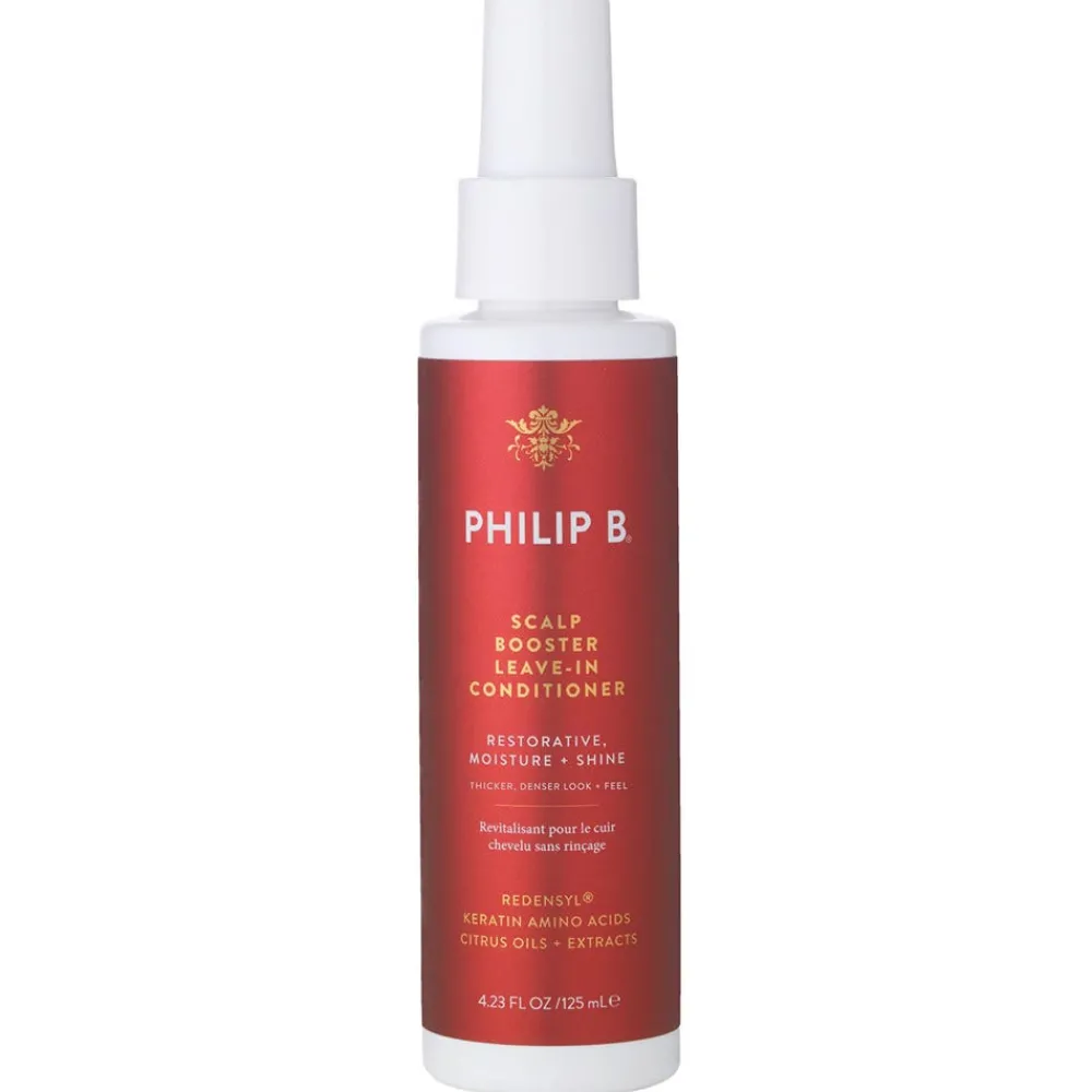 Der leichte und nicht fettende Philip B. Scalp Booster Leave-In Conditioner enthält 3% Redensyl und lässt das Haar üppiger und fülliger aussehen. Salicylsäure sorgt für ein sanftes Peeling, damit sich Ihre Kopfhaut sauber anfühlt, während eine Mischung aus Pflanzenextrakten und wirksamen Aminosäuren aus Weizen und Reis für eine intensive Pflege sorgen.