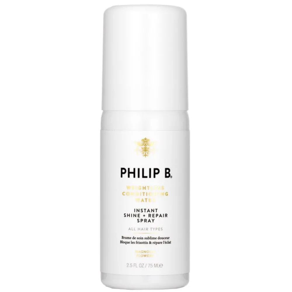 Das neue Philip B. Weightless Conditioning Water spendet dank pflegender Essenzen sofortige Feuchtigkeit und versorgt die Haare mit einer Extra-Portion Glanz. Die im Glanz-Spray enthaltenen hochwertigen, nährstoffhaltigen Pflanzen-Extrakte vitalisieren das Haar und machen es unwiderstehlich weich und seidig. Widerspenstiges Haar wird gebändigt, Farben leuchten wieder und matte, trockene Strähnen werden wieder geschmeidig.