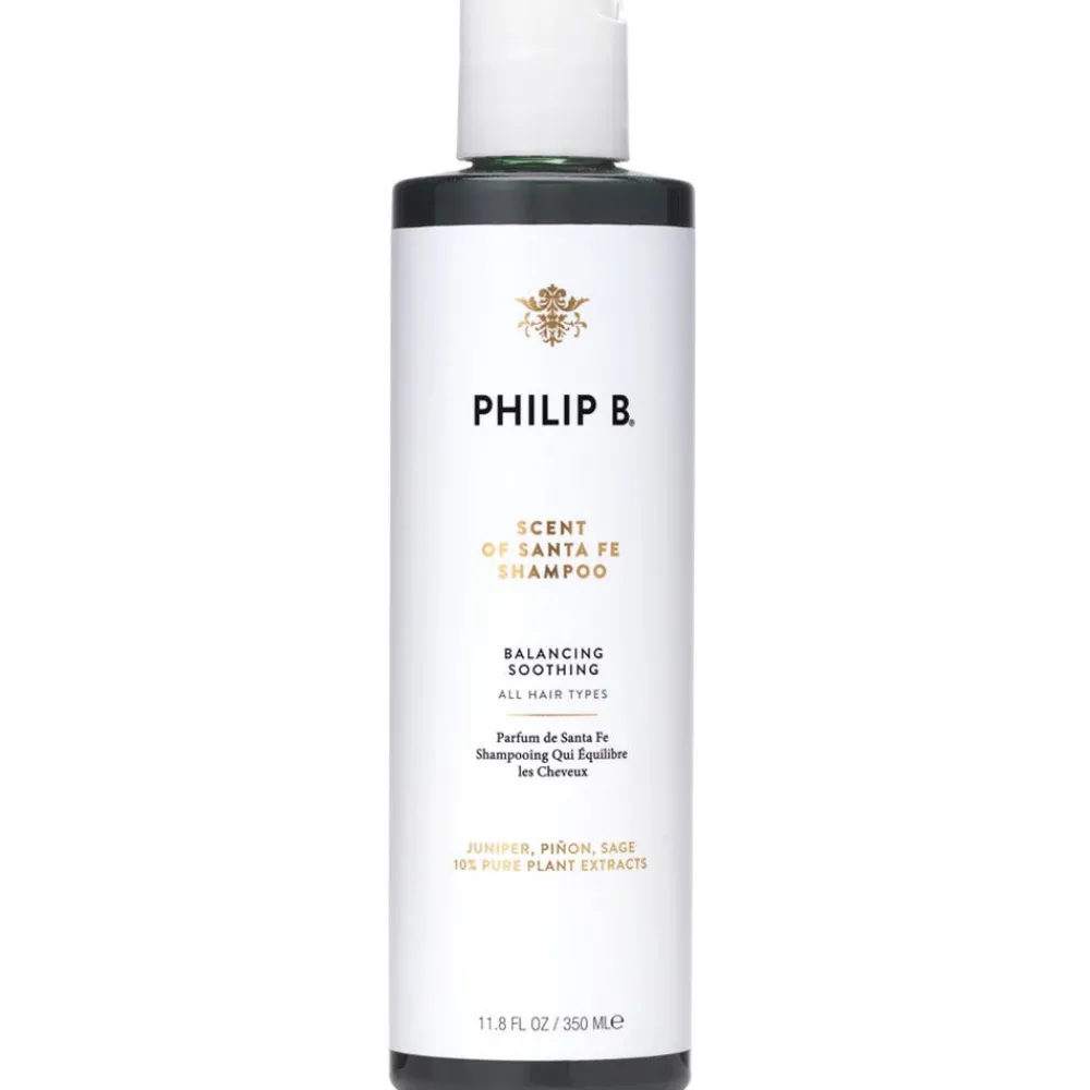 Das Philip B. Scent of Santa Fe Shampoo beruhigt, nährt und reinigt Haut und Haar. Es ist ein mildes Shampoo für die tägliche Haarwäsche, einfach regulierend bei fettiger und beruhigend bei trockener Kopfhaut. Das Shampoo schützt die Farbe bei coloriertem Haar.