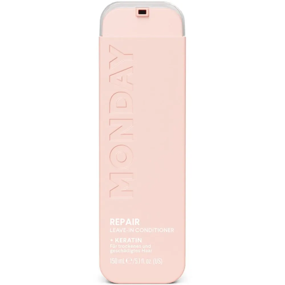 Der MONDAY Haircare Repair Leave-In Conditioner hilft, geschädigtes Haar wieder aufzubauen und zu stärken. Keratin hilft, verlorenes Haarprotein zu ersetzen, Feuchtigkeit wiederherzustellen und die Haarkutikula zu versiegeln – für zusätzlichen Glanz.