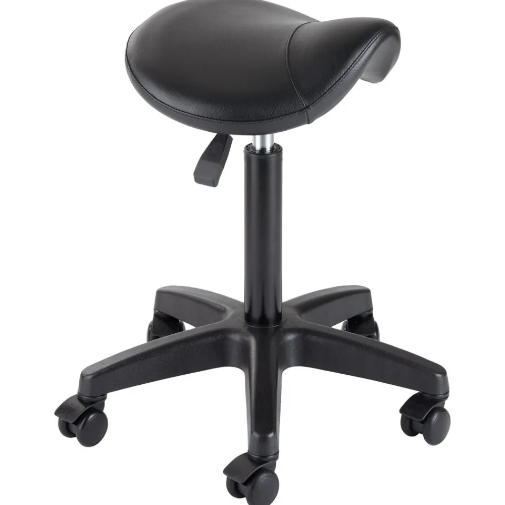 Der Efalock Rollhocker Trim hat ein Kunststoff-Fußkreuz mit 5 gummierten Hairproof-Rollen. Diese Rollen ziehen keine Schnitthaare ein und sind perfekt für harte Böden, wie Keramikfliesen oder Laminat. Er verfügt über einen Sitz in Rodeo Form, die für eine aufrechte, ermüdungsarme Sitzposition sorgtDen Hocker gibt es in drei verschiedenen Höhen.