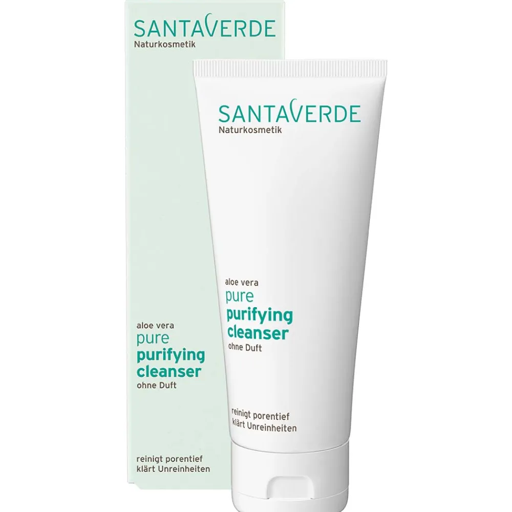 Der Santaverde pure Purifying Cleanser ohne Duft reinigt porentief und befreit die Haut gründlich von Make-up und Schmutz. Das ölfreie Reinigungsgel hilft außerdem dabei die Entstehung von Unreinheiten zu minimieren. Reiner Aloe Vera Saft und Meeresalgenextrakte wirken reizlindernd und schützen die Haut vorm Austrocknen. VItalisierendes Rosmarinhydrolat hilft durch seine antibakteriellen Eigenschaften Entzündungen zu reduzieren. Stiefmüzzerchenblütenextrakt und Salicylsäure aus Weidenrinde wirken talgregulierend, klären Unreinheiten und beugen der Neuentstehung vor. Für verfeinerte und erfrischte Haut. Besonders für sensible und unreine Haut geeignet.