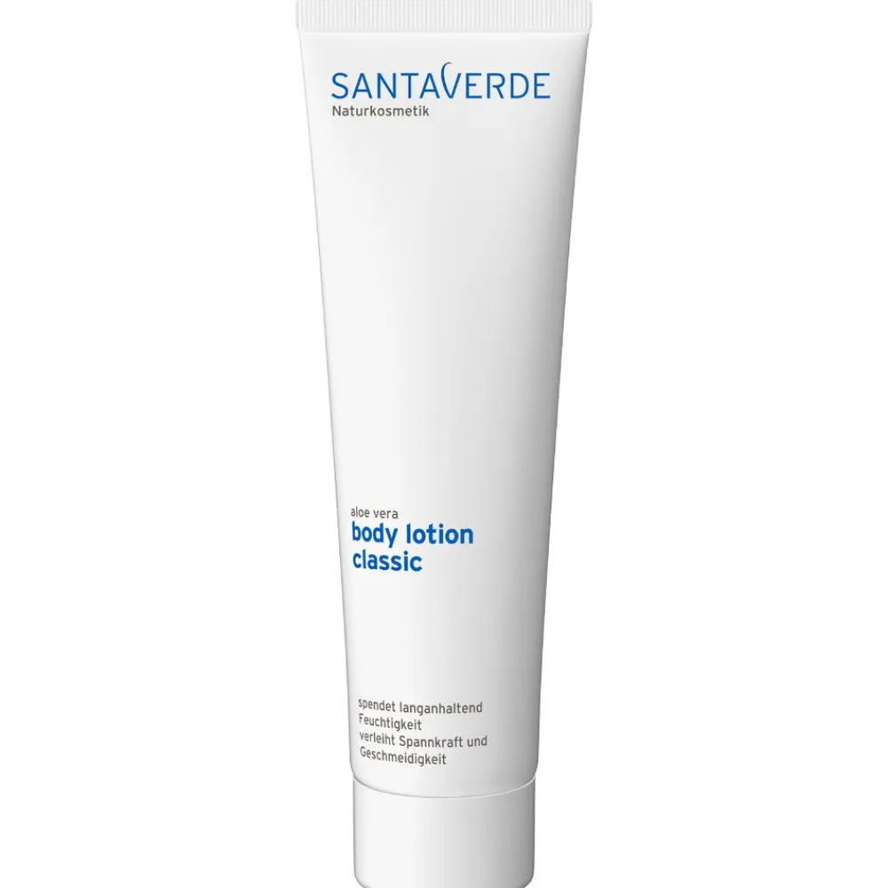 Die leichte Santaverde Body Lotion classic schützt die Haut vor dem Feuchtigkeitsverlust und unterstützt die natürliche Regeneration. Reiner Aloe Vera Saft spendet Feuchtigkeit. Eisenkrautextrakt wirkt belebend, regenerierend und kräftigt die Hautstruktur. Öle aus Traubenkernen, Kokos und Mandeln schützen, pflegen und bewahren die Spannkraft der Haut. Die Santaverde Body Lotion classic zieht schnell ein und hinterlässt ein samtiges Hautgefühl. Für alle Hauttypen geeignet.