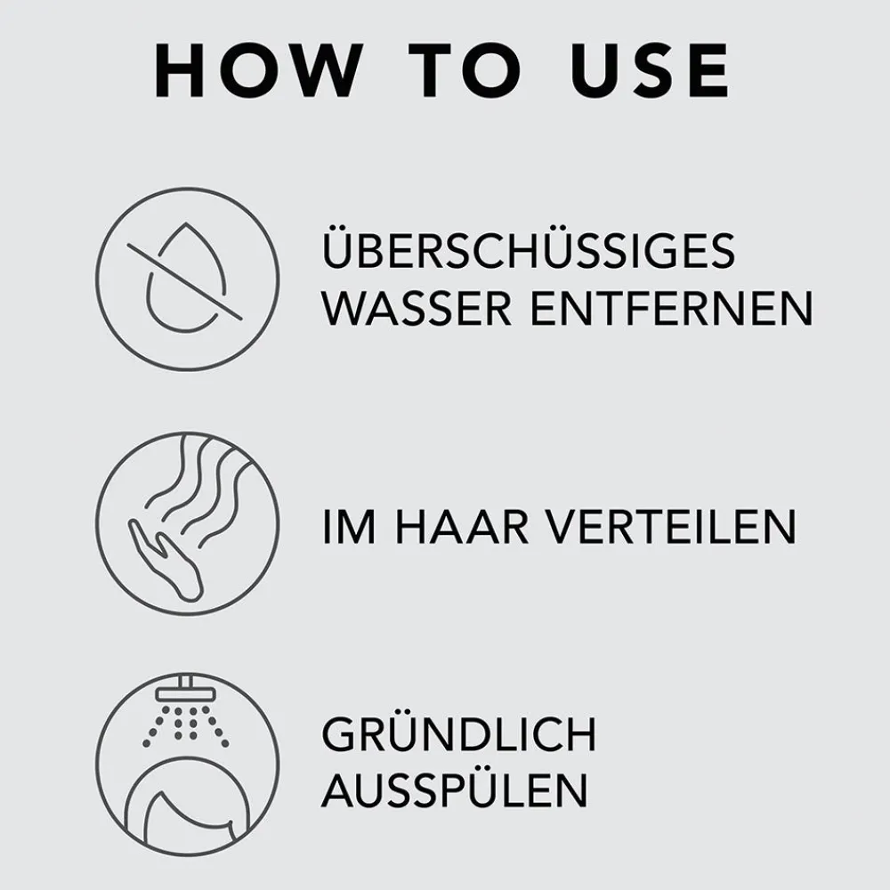 Nach der Haarwäsche ins feuchte Haar einarbeiten. 5-15 Minuten einwirken lassen und danach gründlich ausspülen.