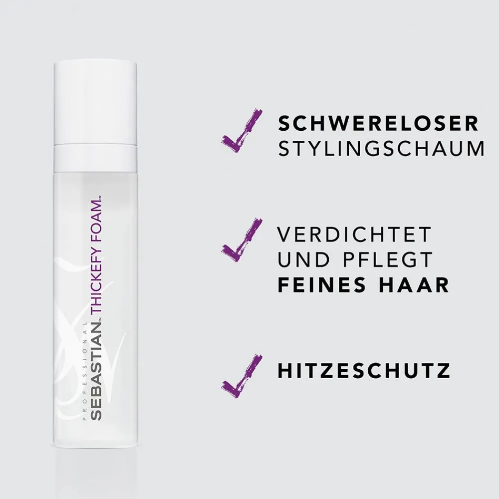 Der Sebastian Thickefy Foam ist ein schwereloser Thickener. Der letzte Schrei in der Strickmode sind feine Maschen in seidigen Lagen, die den Träger nicht erdrücken. Thickefy Foam sorgt für natürliches Volumen ohne das Haar zu beschweren und verleiht ihm eine schwerelose, griffige Textur mit Lifting-Effekt. Seine flüssig-schaumartige Technologiesteigert das Volumen des Haares und sorgt für geschmeidigen Halt. Das ideale Produkt für Kunden mit feinem Haar.