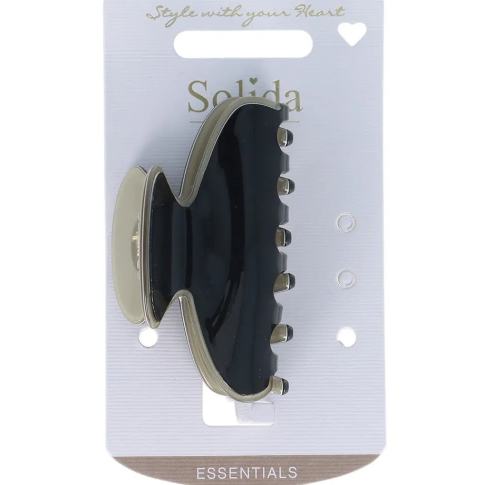 Ganz gleich, ob du kurzes oder langes Haar hast, die Solida Haarklammer schwarz/beige groß shiny ist das ideale Accessoire.
