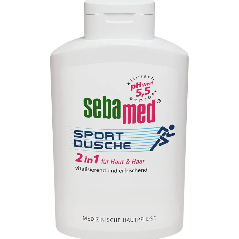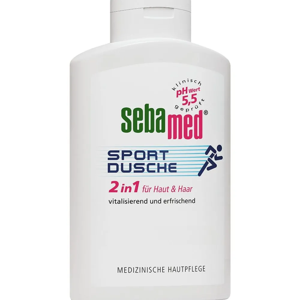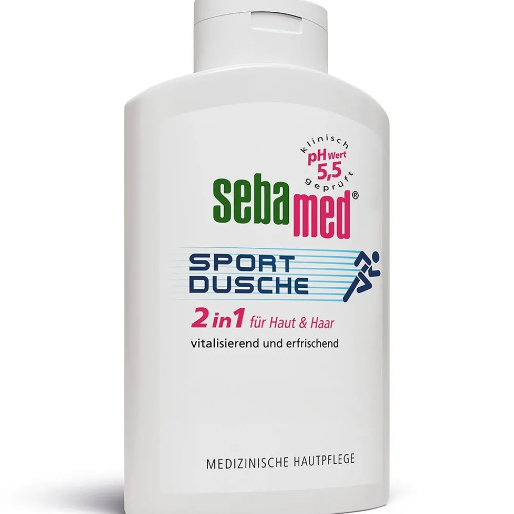 Die sebamed Sport Dusche 2 in 1 ist eine schonende Reinigung für sportstrapazierte Haut. Nach dem Sport braucht empfindliche, strapazierte Haut und Kopfhaut besondere Pflege. Von Dermatologen für sportstrapazierte Haut empfohlen. sebamed Sportdusche 2 in 1 für Haut & Haar reinigt Haut und Haar schonend, pflegt Haar und Kopfhaut intensiv und erfrischt und vitalisiert. Auch bei intensivem Training und häufigem Duschen bleibt die Haut spürbar gepflegt. Der hauteigene pH-Wert 5,5 fördert optimal die Funktion des natürlichen Hautschutzmantels – Haut und Kopfhaut bleiben gesund. Von Dermatologen und deutschen Spitzensportlern empfohlen.