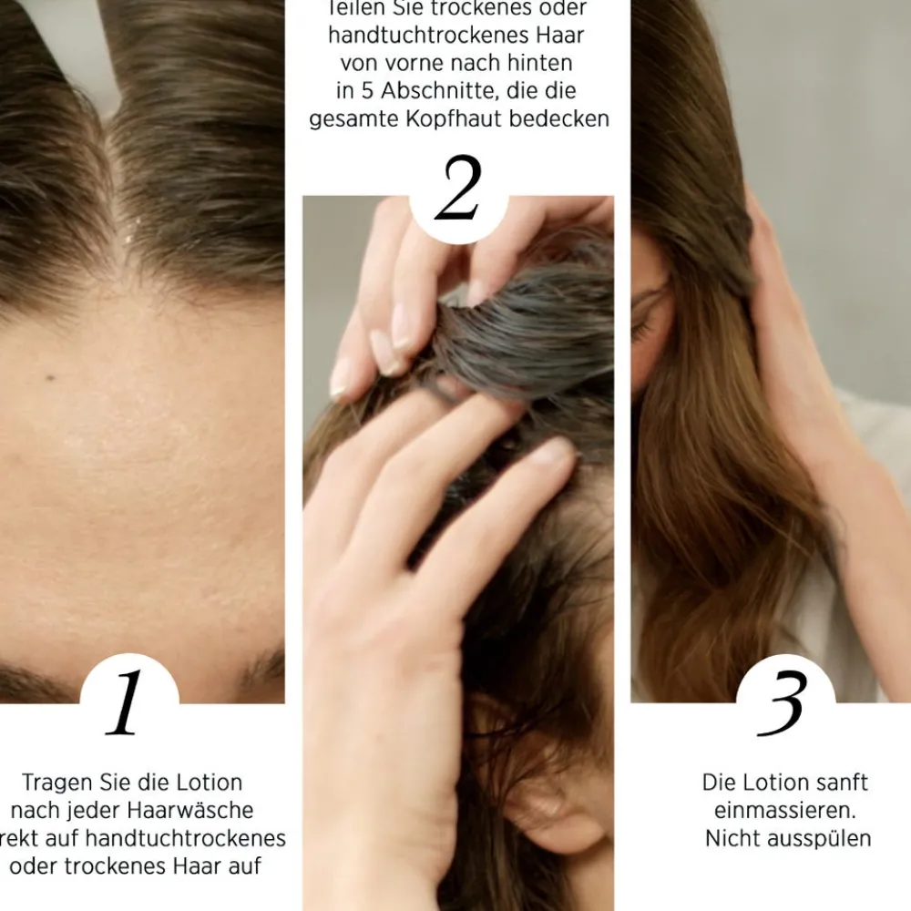 1. Die Lotion nach jeder Haarwäsche direkt auf die Kopfhaut auftragen