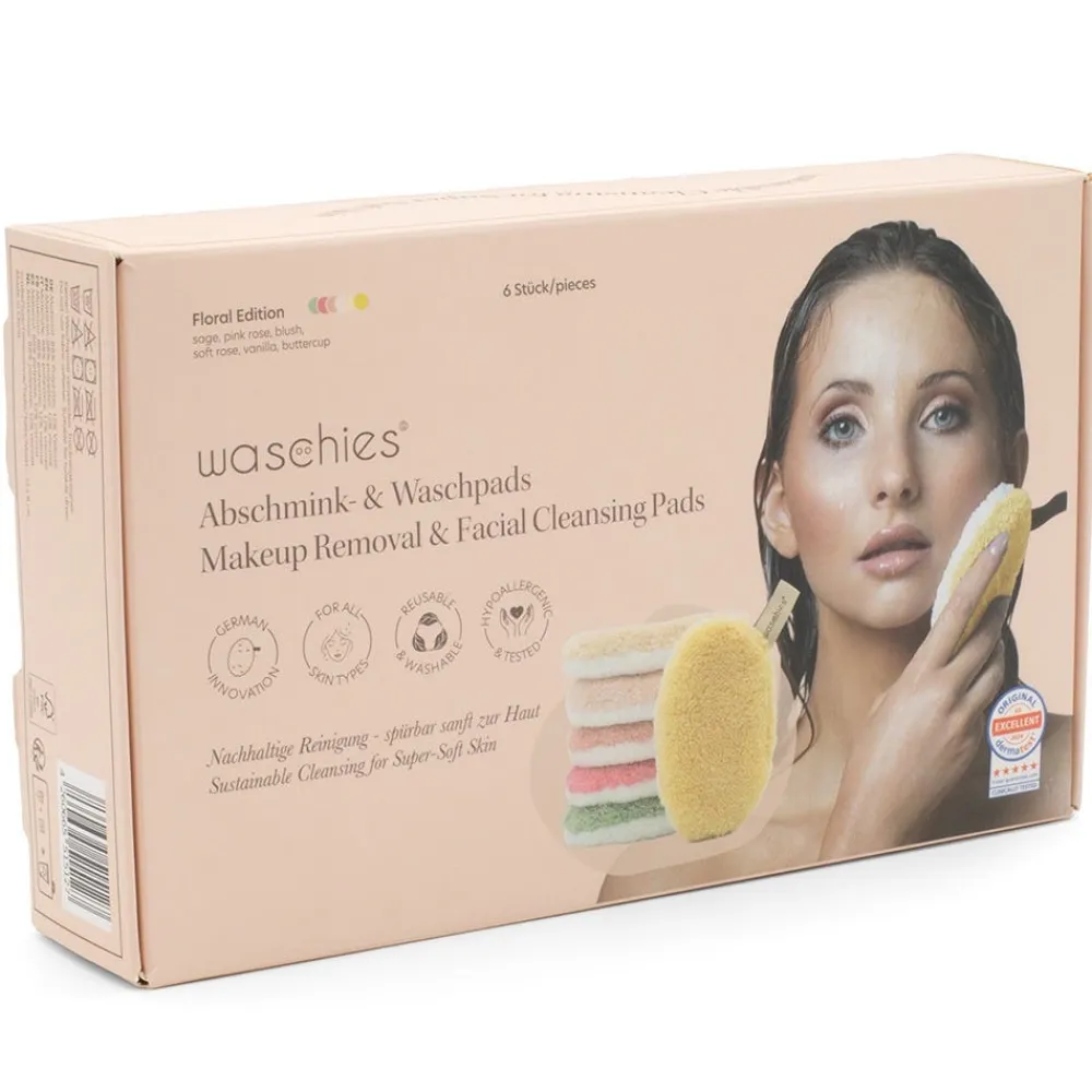 Die Waschies Abschminkpads – 6er Set „Floral“ sind Abschmink- und Reinigungspads, die deine Haut hypoallergen und nur mit Wasser reinigen – ganz ohne zusätzliche Reinigungsprodukte. Der spezielle Fasermix aus Mikrofaser und Viskose entfernt Make-up, Schmutz und Rückstände sanft, aber grüdnlich. ÖKO-TEST „sehr gut“ (03/2024) – getestet wurde die „White Edition“