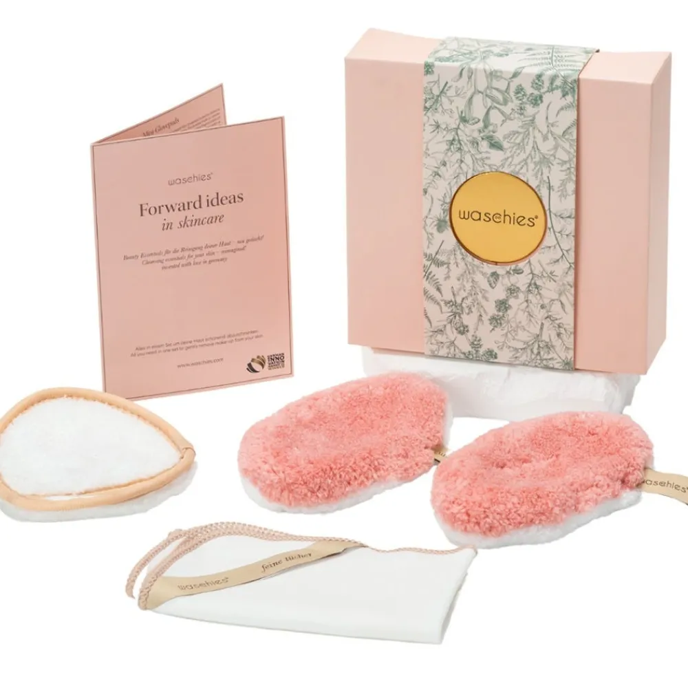 Das Waschies Rosé Edition Box S Geschenkset ist die perfekte Geschenkidee, um deiner besten Freundin eine besondere Freude zu bereiten. Dieses liebevoll zusammengestellte Geschenkset enthält zwei unserer supersoften, wiederverwendbaren Abschmink- und Waschpads, die sanft zu jeder Haut sind und ganz ohne zusätzliche Reinigungsprodukte auskommen – perfekt für eine hautschonende und umweltfreundliche Pflege. Natürlich kannst du die Reinigungspads auch mit einer Kosmetik deiner Wahl kombinieren. Speziell für Augen-Make-up findest du im Set unser neues Mini Glovepad. Abgerundet wird die Abschminkroutine mit unserem feinen Tuch für sanftes und hygienisches Abtrocknen des Gesichts nach dem Abschminken.