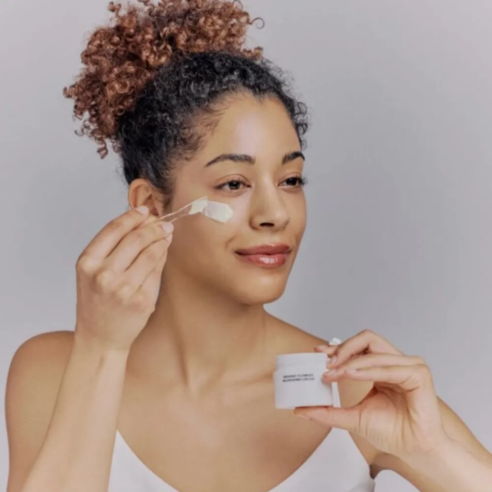 Anwendung der Whamisa Organic Flowers Nourishing Cream