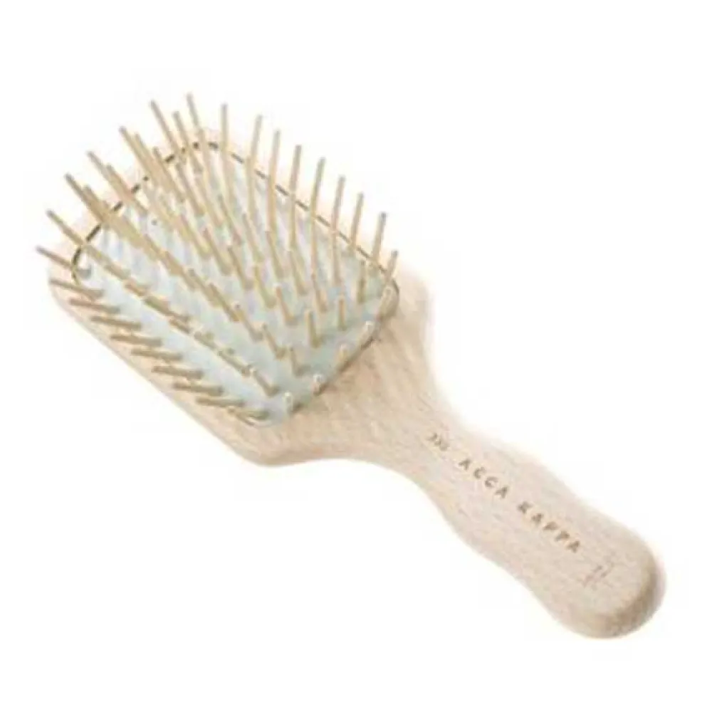 Die Acca Kappa Pneumatische Reisebürste 335 aus Buchenholz verfügt über Buchenholz-Stifte und ein Naturkautschuk-Kissen. Dank der handlichen Abmessungen passt sie in jedes Reisegepäck.