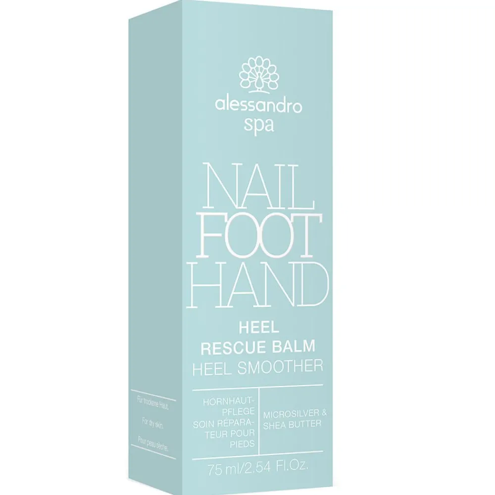 Der alessandro International Heel Rescue Balm ist eine reichhaltige Fußpflegecreme mit wertvollen Inhaltsstoffen, wie Mikrosilber, Teebaumöl, Sandelholzextrakt und Sheabutter. Für geschmeidige Füße.